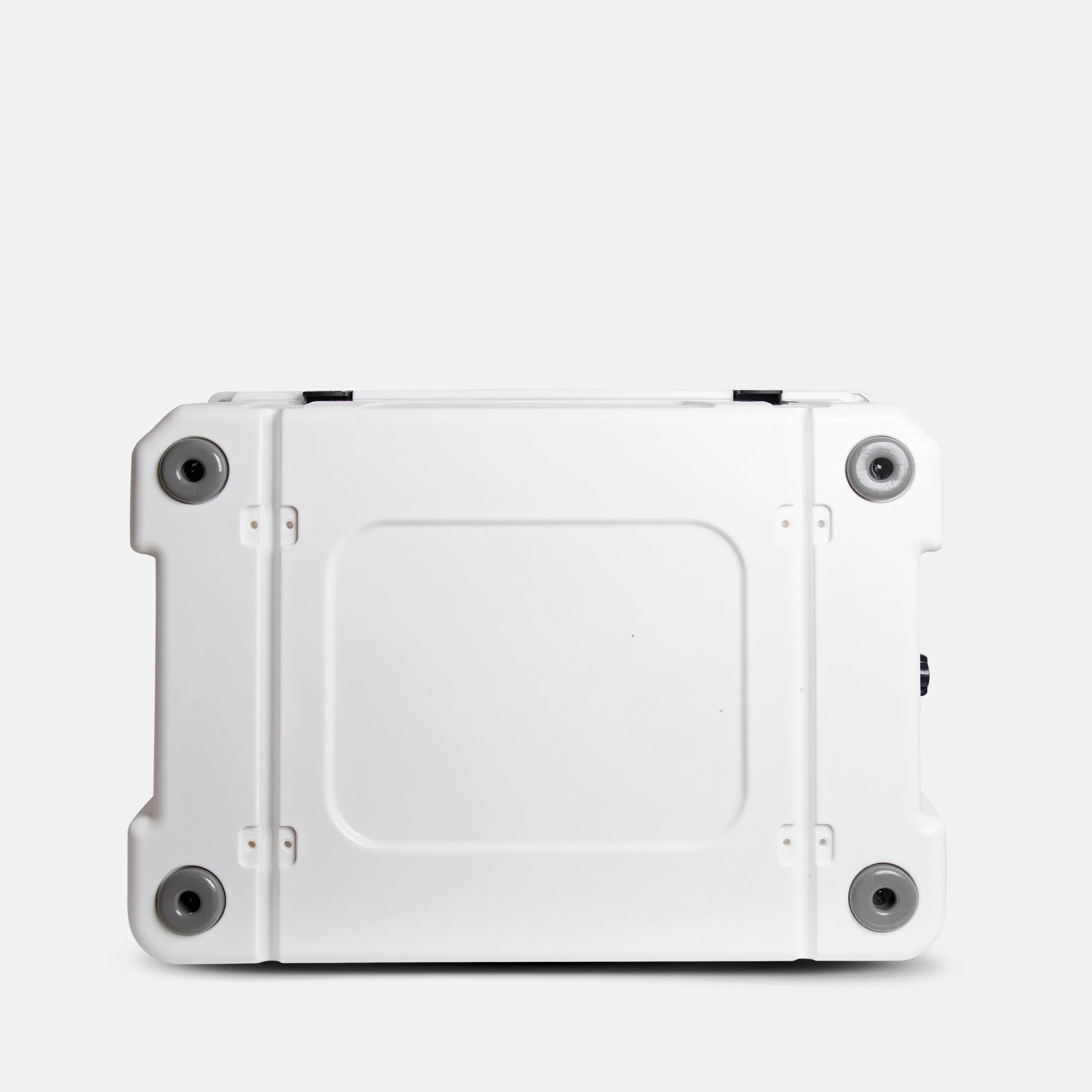 La 65QT – MARINE es nuestro cooler rígido sin ruedas de mayor capacidad; diseñado con una base más angosta y mayor altura de cuerpo que el de la 65QT con ruedas –ideal para optimizar el espacio disponible en la cubierta de cualquier embarcación y ofrecer un lugar donde sentarse o pararse.