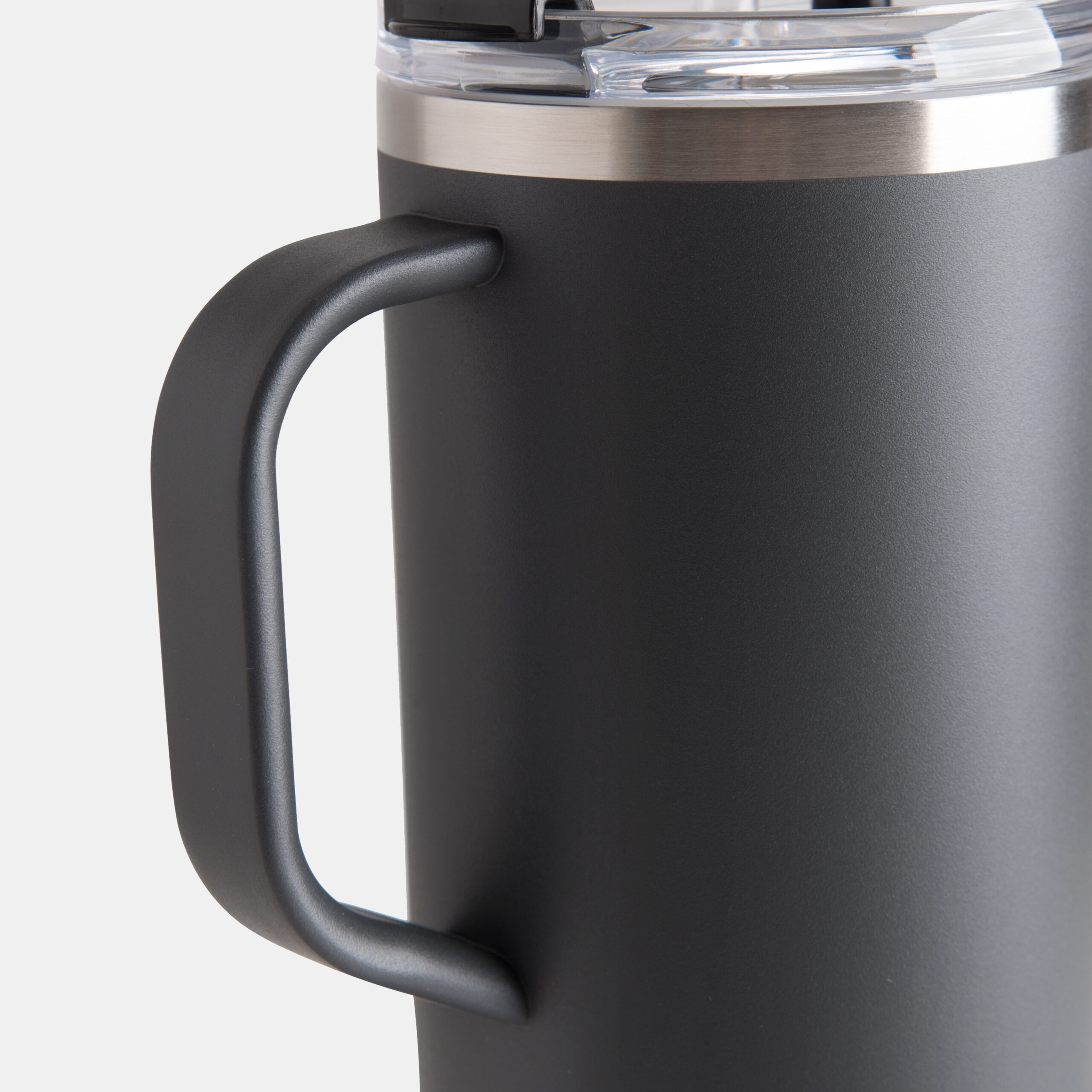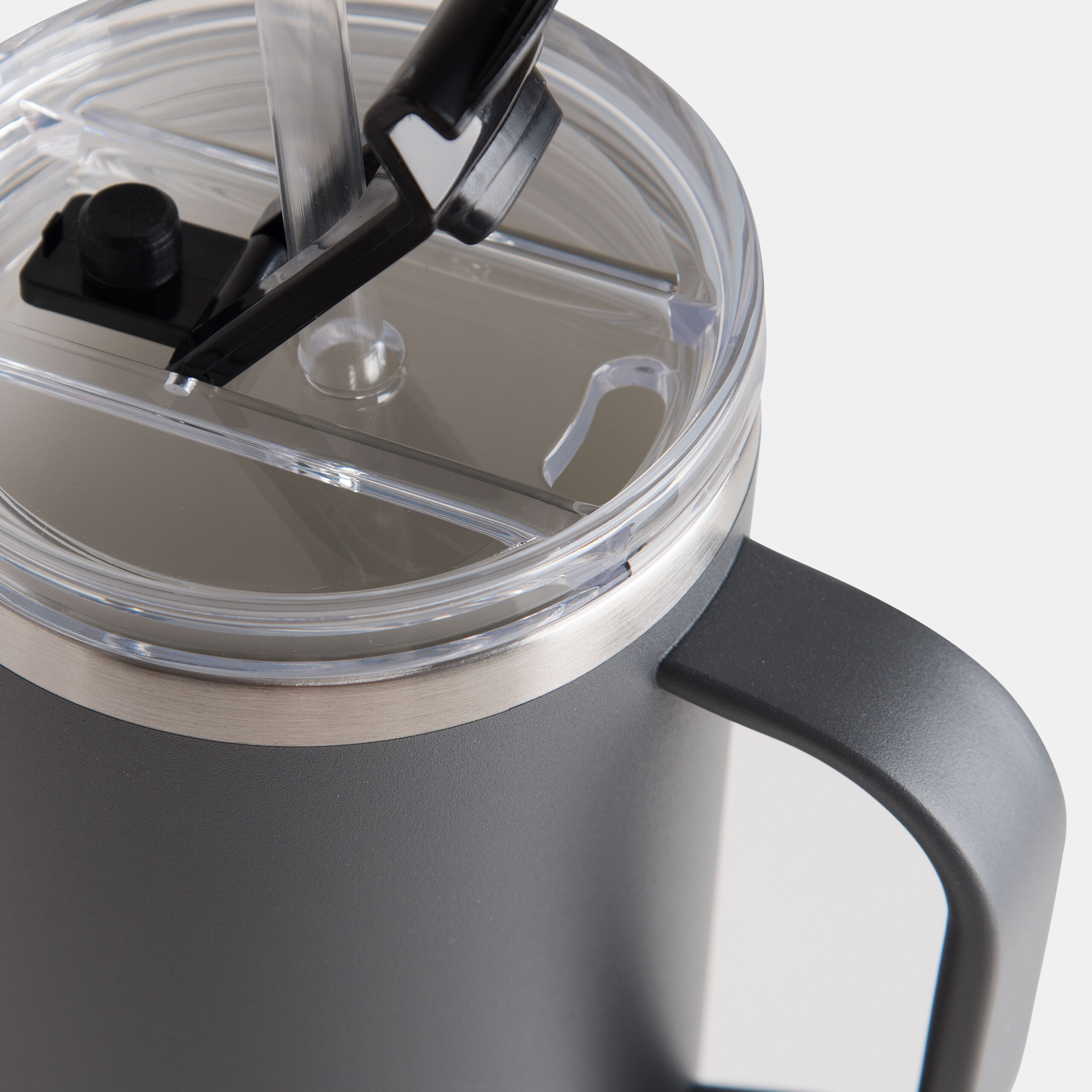 el asa ergonómica de agarre, la base angosta que entra en portavasos y la pajita de Tritan™